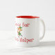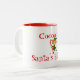 Coffee mug shown in white with a red interior, with a holiday elf. Text says Cocoa for Santa's helper.