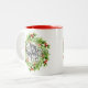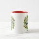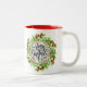 Holiday coffee mug is shown here with a festive Christmas holly wreath print.