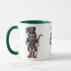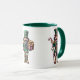 This ceramic coffee mug is shown in a festive holiday nutcracker print.