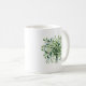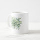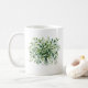 This ceramic coffee mug is shown in a festive holiday mistletoe print.