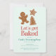 Get ready for the holiday cookie season with these cute holiday decorating party invitation features the text Let's get baked in a trendy font and some cute holiday cookie shapes, including a Christmas tree, gingerbread man, and star.