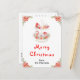 This elegant and festive watercolor Christmas postcard can be personalised with your family name. It features a cake stand with gingerbread cookies, macarons, candy, hot cocoa and a teapot. In the corners are beautiful red poinsettia flowers. The text combines handwritten script and sans serif fonts for a stylish and modern look.