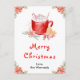 This elegant and festive watercolor Christmas postcard can be personalised with your family name. It features a watercolor cup of hot cocoa and marshmallows, gingerbread cookies and beautiful red poinsettia flowers. The text combines handwritten script and sans serif fonts for a stylish and modern look.