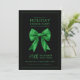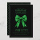 Holiday Dinner Party Green Satin Bow Black Invitation