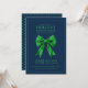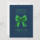 Holiday Dinner Party Green Satin Bow Navy Invitation