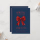 Holiday Dinner Party Red Satin Bow Navy Invitation