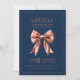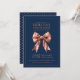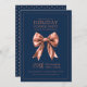 Holiday Dinner Party Rose Gold Satin Bow Navy Blue Invitation