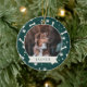 Give your furry friend a special place on the tree this Christmas with our festive pet photo ornament. Cute design features your favourite dog photo with your pet's name beneath, on a forest green background dotted with pawprints and dog bones.