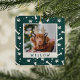 Give your furry friend a special place on the tree this Christmas with our festive pet photo ornament. Cute design features your favourite dog photo with your pet's name beneath, on a forest green background dotted with pawprints and dog bones.
