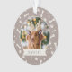 Give your furry friend a special place on the tree this Christmas with our festive pet photo ornament. Cute design features your favourite dog photo with your pet's name beneath, on a neutral taupe background dotted with pawprints and dog bones.
