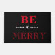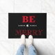 Welcome doormat shown in black with a holiday Be Merry print.