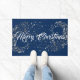 This Holiday doormat is shown in a festive Merry Christmas with silver stars print.