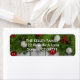 This holiday return address label features evergreens and ornaments and can be customised using the template form.