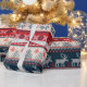 Cute Christmas wrapping paper Featuring holiday themed knitting pattern, a deer silhouette, and script
