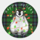 Holiday Festive Penguin, twinkle red green lights Classic Round Sticker