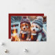 5 x 7 seasonal flat card with two adorable puppies enjoying a warm drink by the campfire after having a fun adventure in the snow.