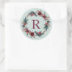 Holiday Floral Christmas Wreath Monogram Classic Round Sticker