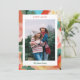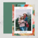 A painterly background in lively holiday colors, creates an artsy frame for this single photo holiday card.