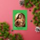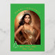 Holiday photo card is shown with a festive Christmas tree accent and with a greeting from you.