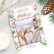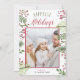 Festive holiday photo card features painted watercolor berries, leaves and branches, surrounding your favourite photo in the centre. "Happiest Holidays" appears at the top in red and green hand lettered block and script typography. Personalise with your custom greeting and names at the bottom.