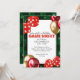 This custom party invitation features a holiday game night theme. Red glitter dice are placed in the top left and bottom right corners, with red and gold party balloons placed in the opposite corners. The background features a green and black Buffalo plaid or flannel pattern with white snowflakes. The "Game Night" title is printed in a festive marquee sign style. It's perfect for a Christmas celebration, office party, or other winter or holiday themed event,