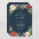 This design features beautiful hand painted fall foliage and florals against a moody dark blue background.