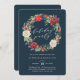 This design features beautiful hand painted fall foliage and florals against a moody dark blue background.