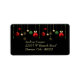 These address labels can be used for a variety of purposes, including as return address labels. They feature an image of bright dangling Christmas balls and stars. The colourful design includes gold, green, and red. The image and text are placed on a black background, and your custom text is in light gold.