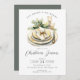 Our Christmas dinner invitation features an elegant holiday dinner place setting and green garland with the saying "eat, drink & be merry" The invitation is simple and elegant, with a white background and black text.