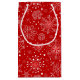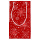 This Christmas holiday gift bag is shown in a red and white snowflakes print design.