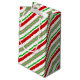 Holiday gift bag is shown in a festive candy cane stripes print.