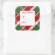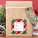 This holiday gift tag sticker is shown with a festive holiday plaid print with text To: and From:.