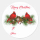 This small size round shape gift tag sticker is shown with a holiday cardinals print.