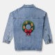 Cute, fun festive holiday denim jacket for women, with a colorful gingerbread wreath. Great for wearing or gifting friends or family for the holidays.
