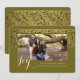 A sophisticated gold and green ribbon overlaid with a framed photo window on an olive green background creates this stunning design.