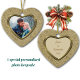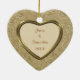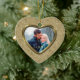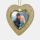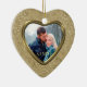 This holiday keepsake ornament features your own photograph within a pretty gold faux brocade pattern frame which has an inside gold lining. The other side has the same gold swirl border with additional text on the light gold tan interior. An elegant and festive keepsake gift for newlyweds, any couple, or for any portrait photograph. To position your photo for the best appearance after it is uploaded, use "Customise it", the arrow indicators, and plus or minus to size it. *Please note - the image is printed on the surface, and does not contain brocade fabric or metal.*