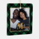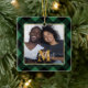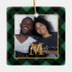 Holiday Green Plaid Monogram with Name Photo Ceramic Ornament