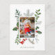 A beautiful watercolor greenery and red berry arrangement frames your photo on this standout holiday postcard. The card has simple, elegant typography, and there is plenty of room to add your personal message.