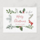 A beautiful watercolor greenery and red berry arrangement frames your message on this standout holiday postcard. The card has simple, elegant typography, and there is plenty of room to personalise.