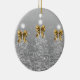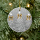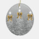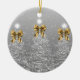Holiday Greeting Silver Christmas Trees Gold Bows Ceramic Ornament