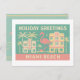 Perfect for sending holiday greetings, collecting retro Miami artwork, gifting to coastal decor lovers, or displaying as mini prints. This design blends 1930s Deco elegance with fun tropical holiday energy—ideal for anyone who loves Miami Beach, vintage travel posters, or pastel holiday stationery.