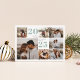 This beautiful modern Christmas card features seven photos in a grid layout, with the year, your custom holiday greeting (shown with "warmest wishes"), and your family name in the remaining squares. A cool minimalist holiday card design that showcases your favorite square and horizontal/landscape-oriented photos.