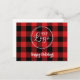 Change the fiery lava red background colour to create your own buffalo plaid logo holiday cards for customers.