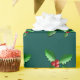 Wrapping paper shown with a deep evergreen colour background with a festive holiday holly print. Customise this item or buy as is.