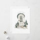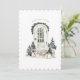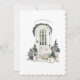 This holiday cars features a watercolor front porch painting of a rounded white door surrounded by greenery. A cute white dog waits patiently to go inside. On the back, there is a small vignette of a holiday cheesecake and a greeting that says "Wishing you and yours a wonderful holiday season and all the best in the coming year!" You can personalise this card with your family's name and the year.