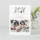 Stunning JOY typography Holiday Greetings Photo Personalised Card - Holiday Photo card from Ricaso - this Photo Personalised card is sure to be a hit with family and friends .. easy to add your own text and photograph - Send your greetings in style this holiday with a personalised card featuring a wonderful text design to the front and a coordinating pattern to the back - designed with holly, pears, wreaths in gold and green festive colours