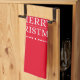 Kitchen towel shown in a red colour with a Merry Christmas print.