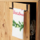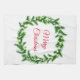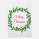 Kitchen towel shown in white with a festive holiday wreath print design.