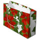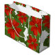 Holiday large gift bag shown in a festive Christmas red poinsettias print.