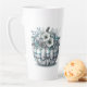 Holiday latte mug is shown with a cute wintery Christmas plaid pumpkin floral print.